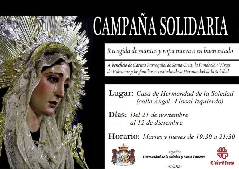 La cofradía del Sábado Santo gaditano pone en marcha su campaña benéfica de recogida de mantas y ropa de invierno
