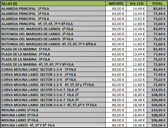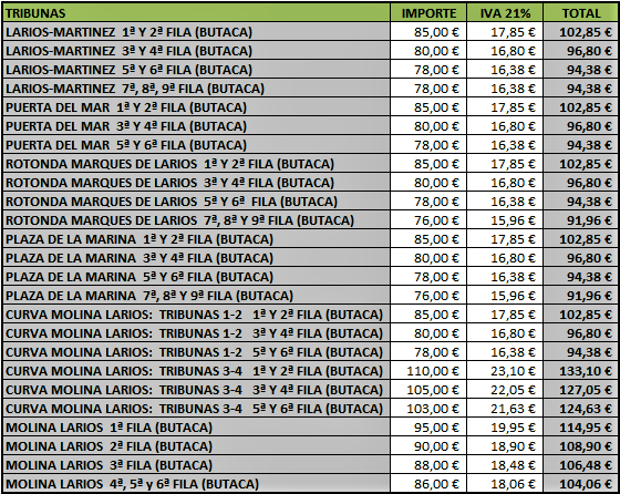 Tarifas de abonos de sillas, tribunas y palcos del recorrido oficial