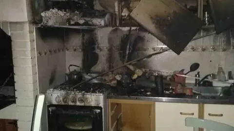 Tremendo susto el que se han llevado varios vecinos de la localidad cordobesa de Hinojosa del Duque, después de que haya salido ardiendo una cocina de una casa del municipio y haya dejado a tres personas heridas.
