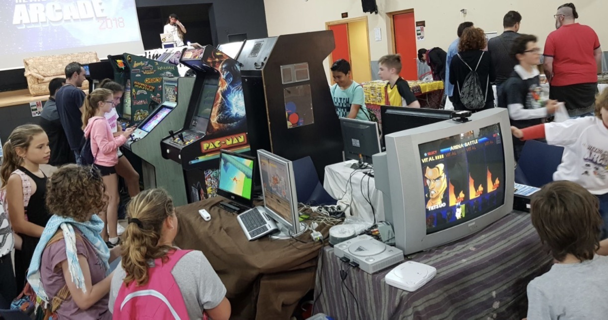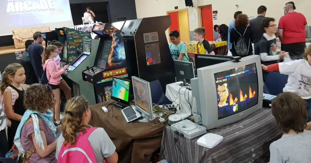Los asistentes disfrutan de los videojuegos, juegos de mesa y máquinas recreativas de aquella época de forma gratuita