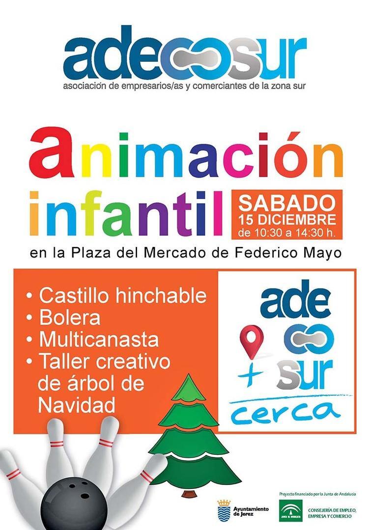 La Asociación de Comerciantes de la Zona Sur de Jerez, ADECOSUR, organiza una jornada de animación infantil el próximo sábado 15 de diciembre, dentro de la campaña de promoción de las compras en el pequeño comercio financiada por la Consejería de Empleo, Empresa y Comercio de la Junta de Andalucía.