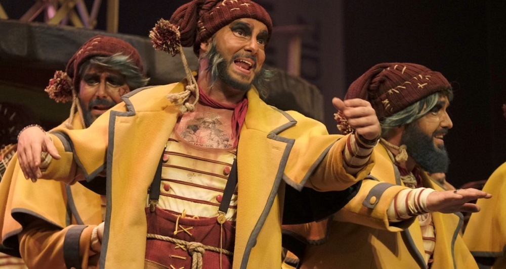 Abrió telón el coro de Nandi Migueles 'Ópera Cádiz'. Ya lo apuntaron en clasificatorias y lo han rematado. El coro ha subido mucho sus prestaciones y se va a quitar el mal sabor de boca que le dejó el año pasado 'El diablo se viste de coro'. Migueles en estado puro, con una música delicioso y unos tangos comprometidos y con mensaje. Vuelve a recordar al mejor autor de antes del parón.