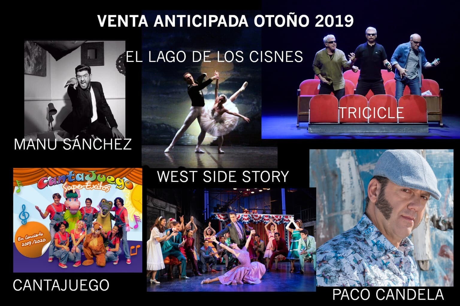 El Teatro Villamarta pondrá a la venta el próximo lunes día 24 de junio las entradas de Manu Sánchez, Ballet Nacional Ruso, Paco Candela, West Side Story, Cantajuego y Tricicle, incluidos en la programación de Otoño.