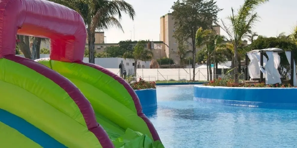 Castillos acuáticos para los más pequeños, espacios de juego y ambiente tropical