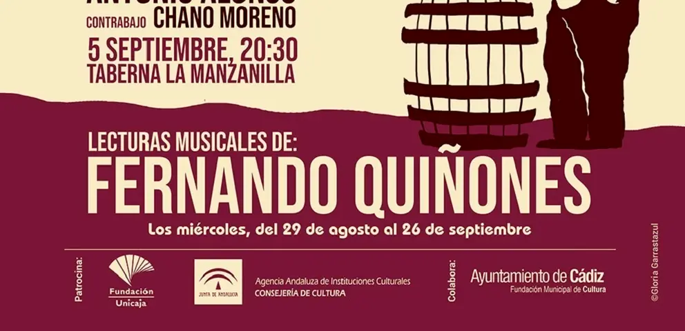 El ciclo 'Lecturas musicales de Fernando Quiñones' comenzará a las 20.30 horas del próximo miércoles, 29 de agosto, en el Patio de la Abuela Nina, donde Koki Sánchez leerá 'Cuqui' acompañada por Emilio Martín al violín. La Fundación Municipal de Cultura del Ayuntamiento de Cádiz colabora con este ciclo, que patrocinan la Fundación Unicaja y la Agencia Andaluza de Instituciones Culturales de la Consejería de Cultura.