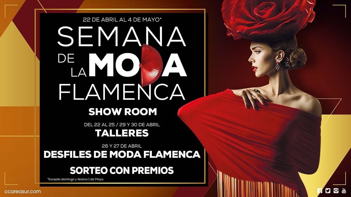Desde el lunes 22 de abril hasta el domingo 5 de mayo (exceptuando el domingo y festivo 1 de mayo), todos los visitantes del centro comercial podrán disfrutar de manera gratuita de la Semana de Moda Flamenca de Área Sur. El Centro Comercial impulsa este proyecto con el objetivo de poner en valor la cultura andaluza y sus tradiciones. Dentro del programa podemos encontrar un sinfín de actividades organizadas en colaboración con las principales firmas andaluzas de moda flamenca.