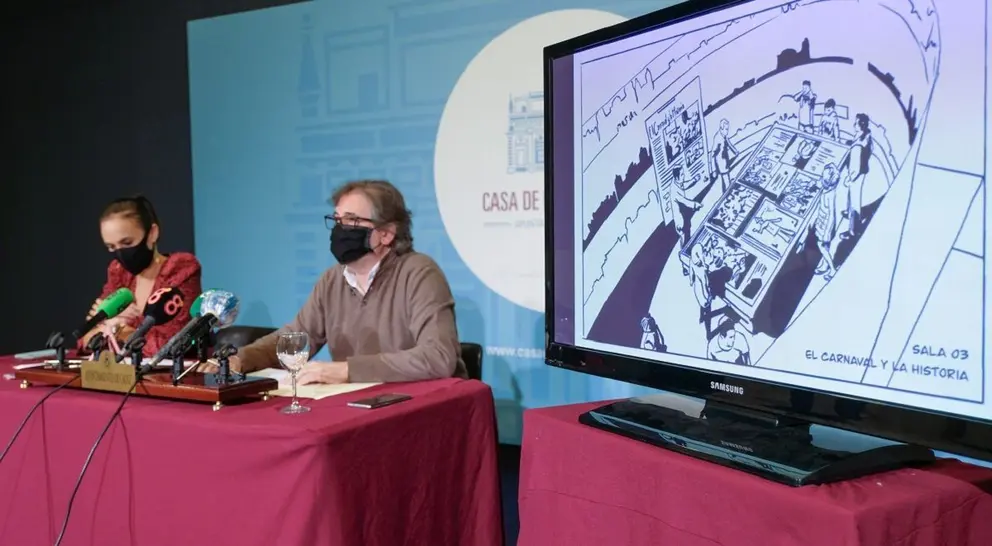 El alcalde accidental de Cádiz, Demetrio Quirós; y la concejala de Cultura y Fiestas del Ayuntamiento de Cádiz, Lola Cazalilla, han presentado el concepto de espacio expositivo que regirá el Museo del Carnaval de Cádiz. Así, han ofrecido los detalles del proyecto básico para la instalación museográfica.