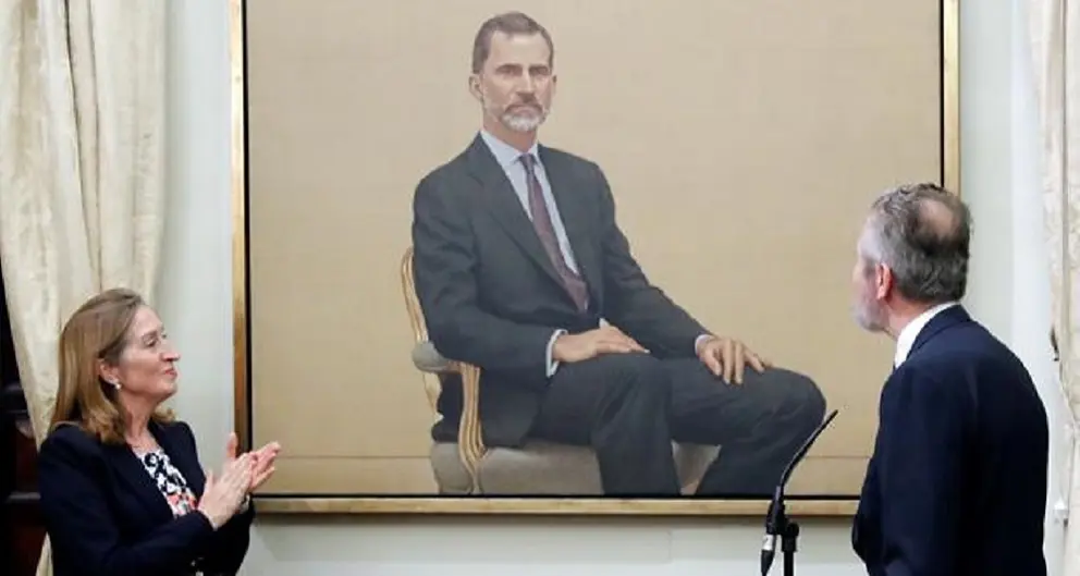 La presidenta del Congreso, Ana Pastor, ha descubierto este lunes el retrato al óleo realizado por el retratista Hernán Cortés, que ha costado 88.000 euros. Pastor, se dirigió al propio artista para mostrarse convencida de que se trata de "uno de tus mejores retratos". A punto de cumplir, el próximo 19 de junio, el quinto aniversario de la proclamación del jefe del Estado, dijo, el Congreso «no podía permanecer otro más» sin un retrato institucional del Monarca.