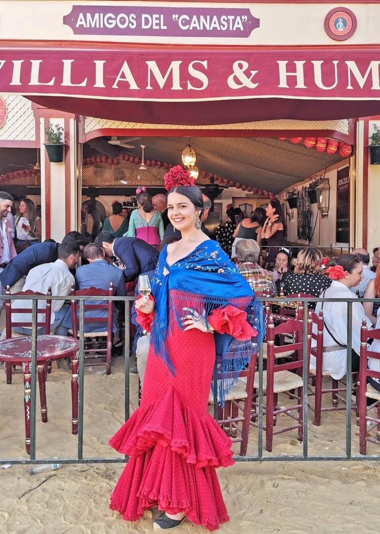 La hermana de Carolina García recibe el traje de flamenca de El Corte Inglés, diseñado por Micaela Villa.