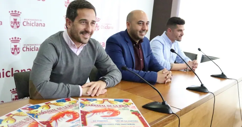 Los delegados municipales de Fiestas y Fomento, José Manuel Vera y Adrián Sánchez, y el responsable del evento, Julián Rodríguez, han presentado el ‘Carnaval de la Rosa’, que se celebrará el próximo sábado, 23 de febrero, en el callejón de la Rosa, a partir de las doce de la mañana. Esta cita contará con las actuaciones de la chirigota ‘Los Varbateños’, de la comparsa juvenil ‘La Indecisa’ y de la chirigota infantil de San Fernando ‘Los de la Cantera’. Además, se prevén actuaciones de otras agrupaciones que aún están por confirmar.
