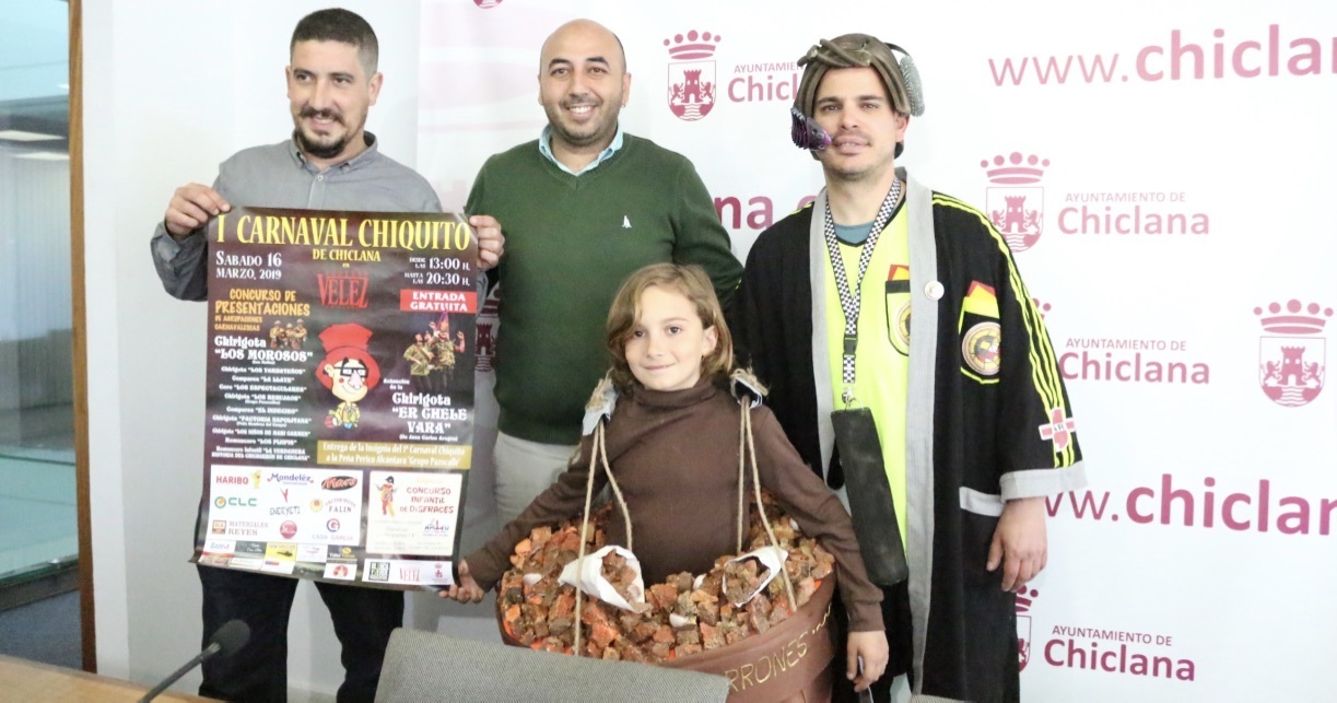Las Bodegas Vélez acogerán el próximo sábado 16 de marzo la primera edición del Carnaval Chiquito, que se desarrollará a partir de las doce de la mañana y cuya entrada es completamente gratuita. Así lo han anunciado el delegado municipal de Fomento, Adrián Sánchez, quien ha comparecido en rueda de prensa junto a uno de los organizadores del evento, David Caro; al integrante del romancero infantil ‘La verdadera historia del chicharrón de Chiclana’, Yeray Amado, y al representante de ‘Los Varbateños’, Jesús Aza.