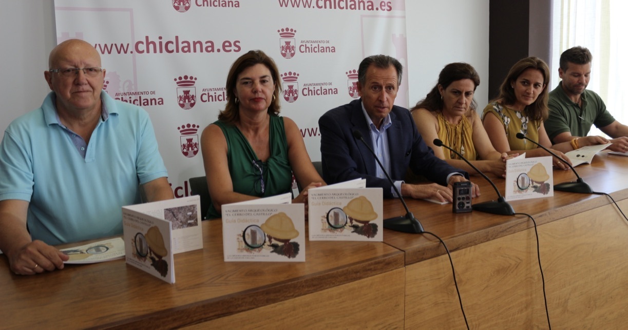 Con el objetivo de seguir potenciando el yacimiento arqueológico del Cerro del Castillo, el Ayuntamiento de Chiclana y la Asociación Castillo de Gerión han editado una guía para adultos y niños, que podrán conocer de una forma rápida y didáctica la historia de los orígenes de Chiclana, así como el rico patrimonio cultural existente en esta zona del casco histórico. Por ello, el alcalde de Chiclana, José María Román, y la arqueóloga y representante de la Asociación Castillo de Gerión, Paloma Bueno, han presentado esta guía en una rueda de prensa en la que han estado acompañados de las delegadas municipales de Cultura y Turismo, Pepa Vela y Ana González respectivamente, y de los socios de esta entidad cultural, José Raya y Francisco Cabillas.