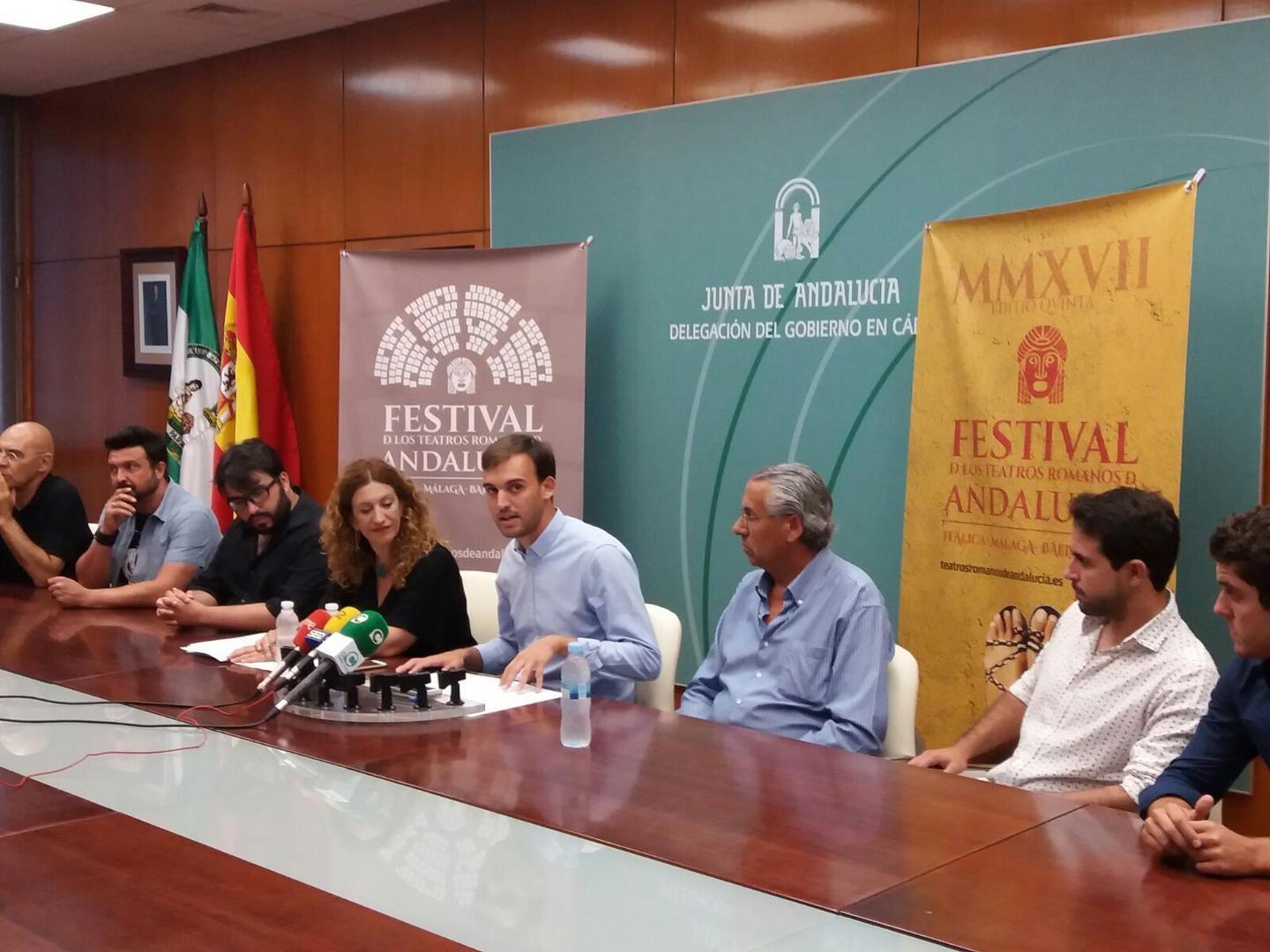El delegado territorial de Cultura, Turismo y Deporte, Daniel Moreno, ha presentado hoy la programación de la quinta edición del Festival de los Teatros Romanos de Andalucía. Moreno ha estado acompañado de la directora del Instituto Andaluz del Flamenco, Mari Ángeles Carrasco, del director del Conjunto Arqueológico Baelo Claudia, Ángel Muñoz y de representantes de las compañías que actuarán este año. El programa arrancará en el enclave arqueológico Baelo Claudia (Bolonia, Tarifa. Cádiz) el próximo 2 de agosto. El delegado de Cultura ha anunciado que el consejero, Miguel Ángel Vázquez, tiene previsto asistir a este estreno.