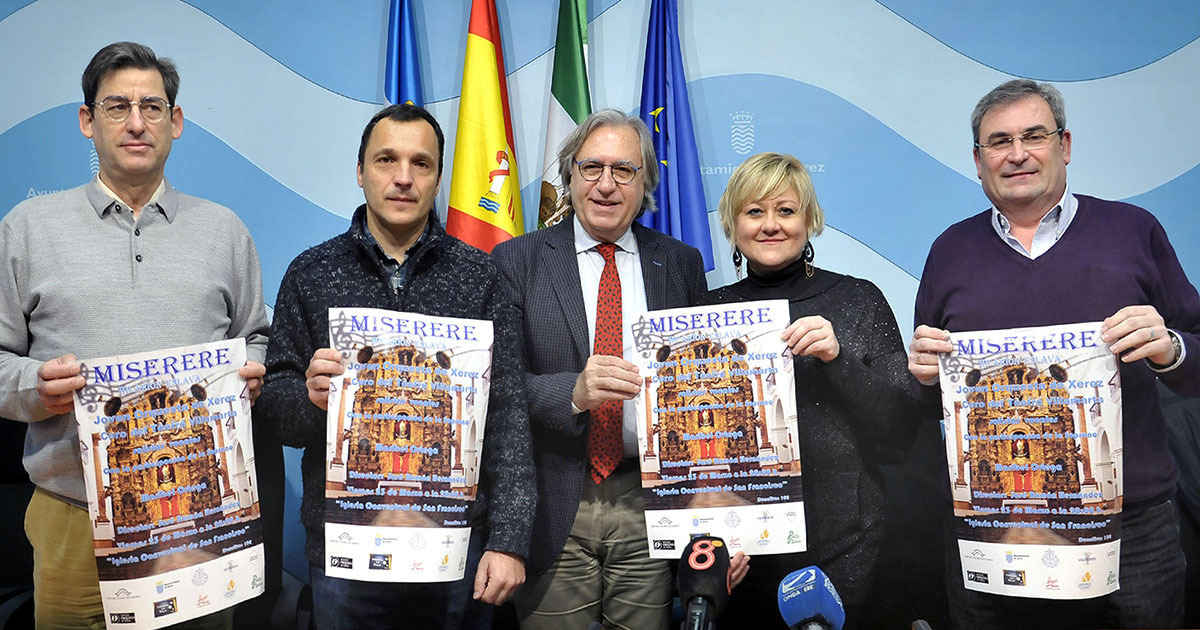 El teniente de alcaldesa de Urbanismo, Dinamización Cultural, Patrimonio y Seguridad, Francisco Camas, ha presentado esta mañana el 'Miserere' de Hilarión Eslava que el Coro del Teatro y la Joven Orquesta de Xerez ofrecerán el próximo Viernes de Dolores, 23 de marzo, en la iglesia conventual de San Francisco.