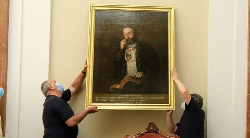 El cuadro ha vuelto a colocarse en el Ayuntamiento de Cádiz después de la intervención de Pedro Macías y José Manuel Ramírez