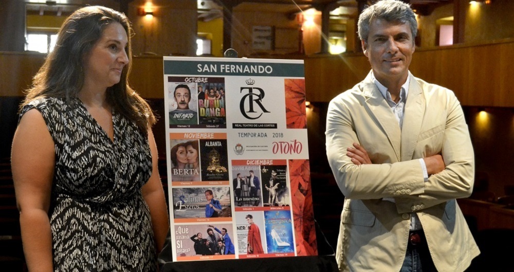 El primer teniente de alcaldesa y delegado general del Área Municipal de Promoción de la Ciudad, Fran Romero, y la delegada específica de Espacios Culturales y el Real Teatro de las Cortes, Begoña Castro, han dado a conocer esta mañana la programación de la temporada otoño 2018 del Real Teatro de Las Cortes.