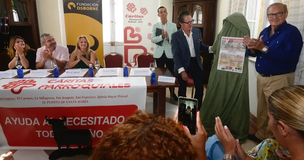 La teniente de alcalde de Fiesta, Ana María Arias, ha acudido, junto al presidente de Cáritas El Puerto, Alejandro Huelfo, y de Cáritas Diocesana Asidonia-Jerez, Francisco José Domouso Martínez, a la presentación del cartel del Desfile Benéfico de Salvador Egea, cuya recaudación será destinada a Cáritas y que se celebrará el día 25 de septiembre.