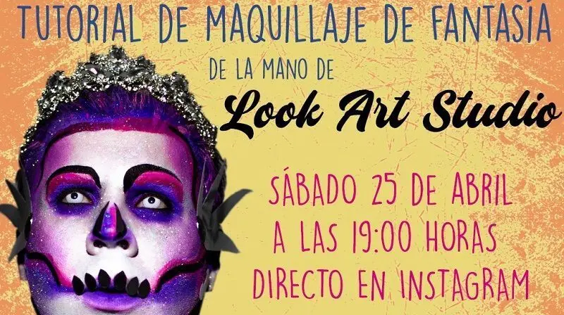 El sábado, también a las 19.00 horas, habrá un directo en Instagram, donde la academia Look Art Studio, presentará un tutorial de maquillaje de fantasía. El curso está enfocado para jóvenes de entre 14 y 34 años en el cual podrán realizar y poder compartir cómo lo realizan además de compartir dudas. En él se realizará una calavera de manera artística de técnica libre.