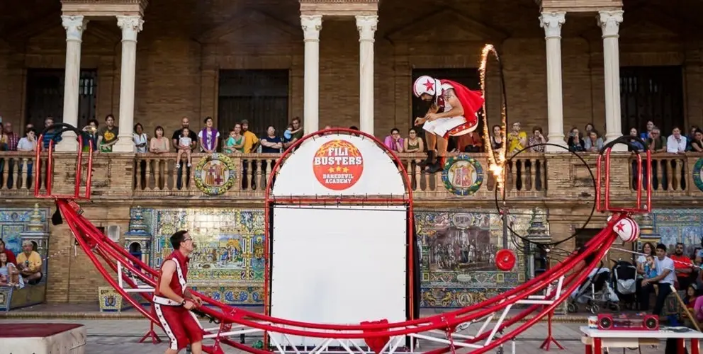 Una cita comprometida con el binomio circo y ciudad, con una programación, desarrollada al 100% en espacios públicos, al aire libre y de acceso gratuito, equilibrando los espacios intramuros y extramuros y que convierte a ¡Alehop! en una de las principales citas circenses del verano en el sur de España.