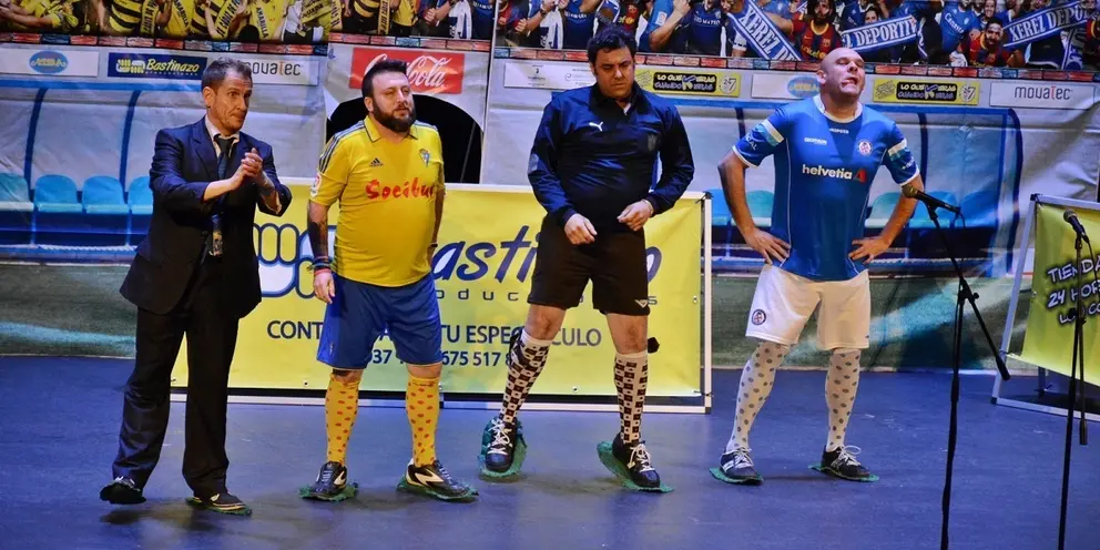 Ahora, ambos cómicos llegan a Jerez con este espectáculo de humor donde las risas están aseguradas. Junto a ellos comparten escenario otros dos humoristas, Jesús Tapia (delegado de campo) y Vicente Ruidos (Árbitro del Derby).