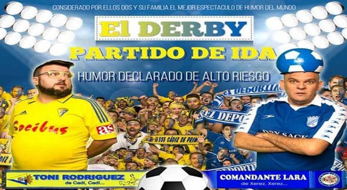 Toni Rodríguez, de 'Cadí' y Luis 'Comandante' Lara, de Xerez, se batirán en duelo en un 'Derby' con muchos driblings, regates, caños, humor y risas. Disputarán el partido de ida mañana viernes, día 25 de mayo, en el Teatro Villamarta. Ambos cómicos serán los protagonistas de un divertido y reñido partido de rivalidad creado como un espectáculo para todos los públicos, les guste o no el fútbol.