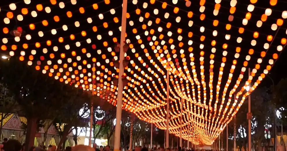 El recinto ferial estará iluminado con 24.200 farolillos en colores rojo y blanco en el paseo central de la Calzada y la avenida de la Estación. Los pasillos laterales contarán con exornos y habrá cinco pórticos de luces en la avenida de Las Piletas, de Bajo de Guía, la Estación y Calzada, además de la propia portada.