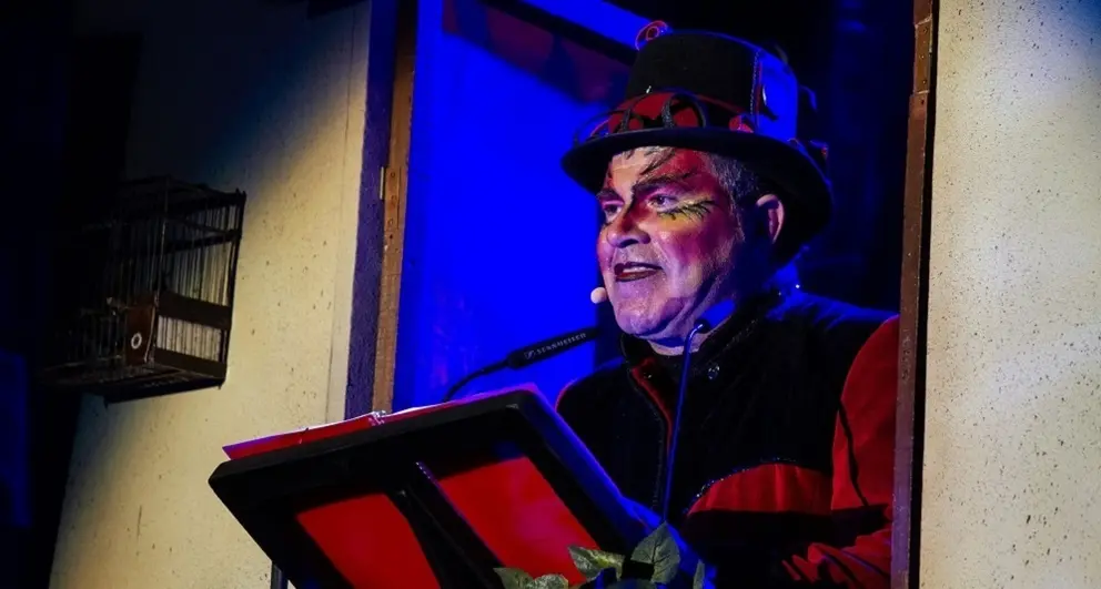 Y para el final sin duda el coro y la exitosa colaboración de dos décadas de Julio Pardo, con quien ha cosechado todo un repertorio de laureles de más de 20 finales y varios primeros premios, entre ellos los de 'La tienda de la cabra', 'El buque escuela', 'La gaditana', 'Cumpleaños feliz', 'El coro', 'El pregón', 'Por los bloques' o 'El coro la catedral', y del que se refirió "conocí la gloria, desde Guanahanní a ese Don Taratachín, que no era más que una versión de Dios Momo convertido en duende juguetón que suele visitarte en noches como esta en noches de carnaval". Para ello que mejor muestra con la presentación de "La Tienda de la Cabra" y el tango de "Don Taratachín".