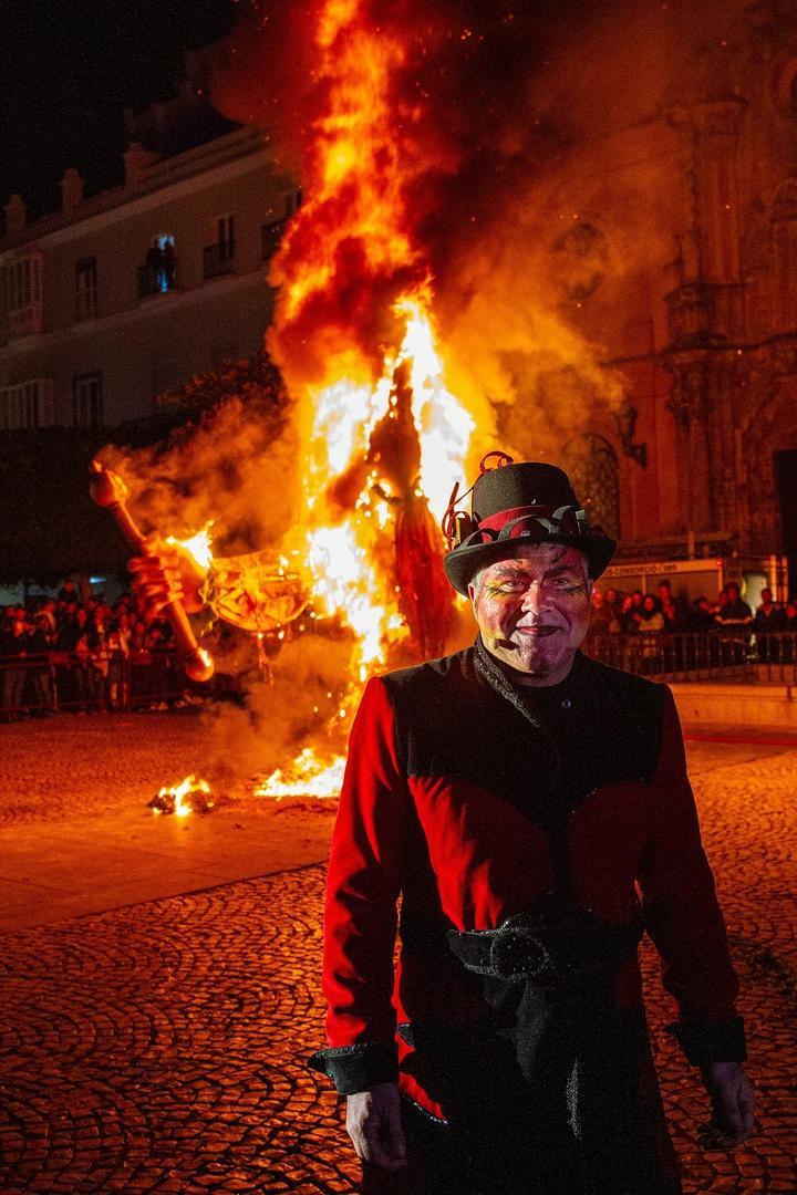 El popurrí de 'La tienda de la cabra' amenizó el fuego de un Momo que se consumió entre los aplausos de un publico que disfrutó del final del reinado de Don Carnal. El humo se llevó en el aire el sentido, las coplas y le recuerdo, pero no la alegría que aguantará durante 12 meses hasta su resurgimiento como el ave fénix en forma de un nuevo Carnaval.