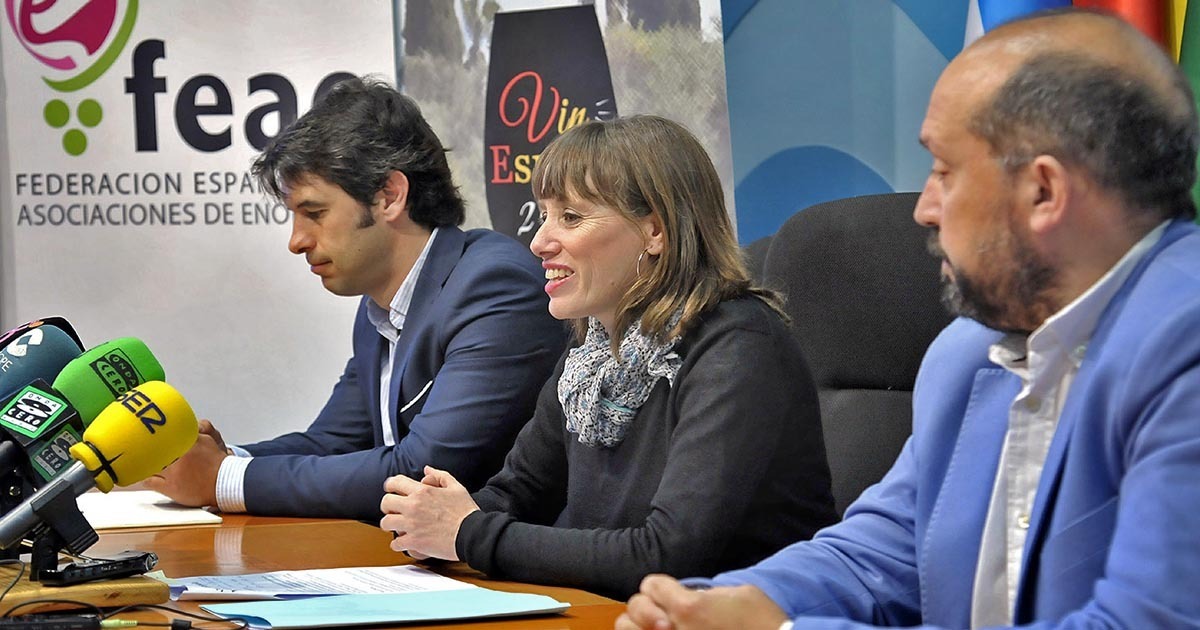 La teniente de alcaldesa de Empleo, Recursos Humanos y Deportes, Laura Álvarez, el presidente de la Federación Española de Asociaciones de Enólogos, Santiago Jordi, y el presidente de la Asociación Andaluza de Enólogos, Juan José Mesa, han presentado este lunes 9 de abril la primera edición del Concurso Nacional de Vinos Vinespaña, organizado por la Federación Española de Asociaciones de Enólogos (FEAE), con la colaboración del Ayuntamiento, y que se celebrará los próximos días 19 y 20 de abril en el Conjunto Monumental del Alcázar.
