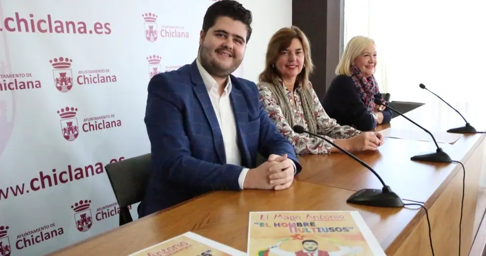 La delegada municipal de Cultura, Pepa Vela; la vicepresidente de la Asociación de Reyes Magos, Juani Verdugo, y el Mago Antonio han presentado el espectáculo que el propio Mago Antonio protagonizará el próximo jueves 25 de octubre y que lleva por título ‘El Hombre Multiusos’. Esta cita se desarrollará en las instalaciones del Teatro Moderno, a partir de las siete de la tarde y las entradas tienen un precio de cinco euros. Además, todos los beneficios de esta actuación irán destinados a la campaña ‘Ningún Niño Sin Juguetes’, de la Asociación de Reyes Magos.