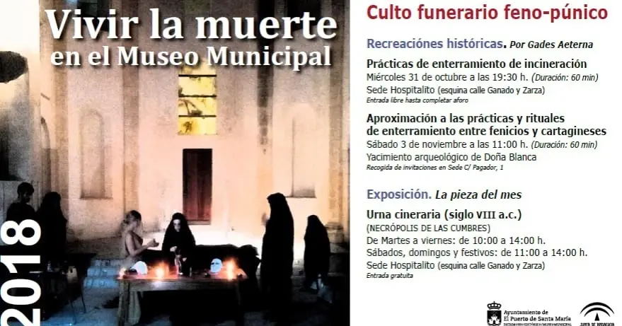 Con motivo de la celebración del Día de los Difuntos el jueves 1 de noviembre, la concejalía de Patrimonio Histórico, que dirige Mª Eugenia Lara, ha anunciado el inicio del programa “Vivir la Muerte en el Museo Municipal”, por el que se llevarán a cabo dos recreaciones históricas entorno “El culto funerario feno-púnico”, por parte de Gades Aeterna.