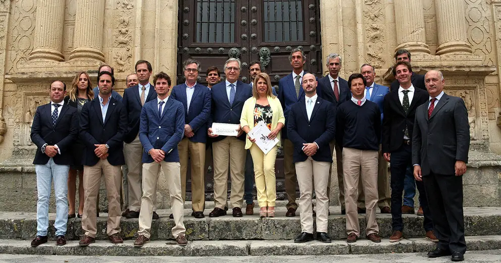 La alcaldesa, Mamen Sánchez, acompañada del teniente de alcaldesa de Urbanismo, Dinamización Cultural, Patrimonio y Seguridad, Francisco Camas, ha recibido hoy a los doce jinetes de la Escola Portuguesa de Arte Equestre y una representación de la Real Escuela Andaluza del Arte Ecuestre, encabezada por su director, Juan Carlos Camas, que participarán mañana viernes en la Gala dos Escuelas Jerez-Portugal’, que se celebrará a las 22 horas, en el Recreo de las Cadenas.