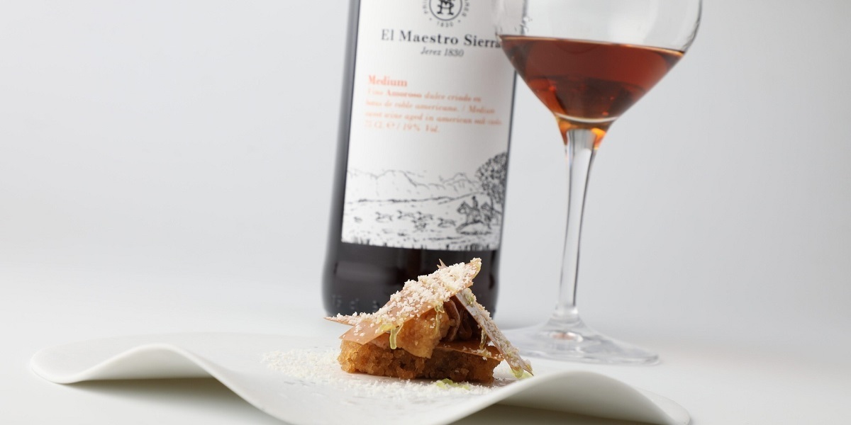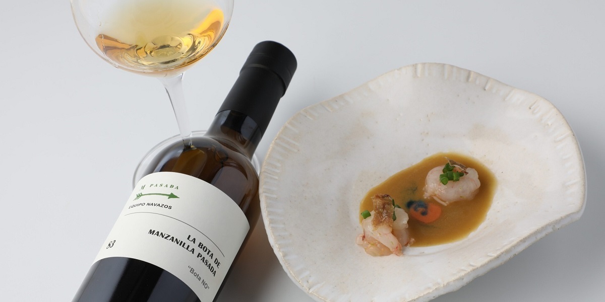 El menú de BonAmb** ha consistido en un entrante de Escabeche de aceitunas, tagarninas y langostinos de Sanlúcar, servido con Manzanilla Pasada bota 83, Bota Punta, de Equipo Navazos; Hermanamiento de Amontillado y Fondillón como primer plato, con Amontillado 51/1 VORS de Bodegas Osborne; y como postre Almendra salada, coca soja calada de Brandy de Jerez y limón con Amoroso Medium Dry de Bodegas El Maestro Sierra.