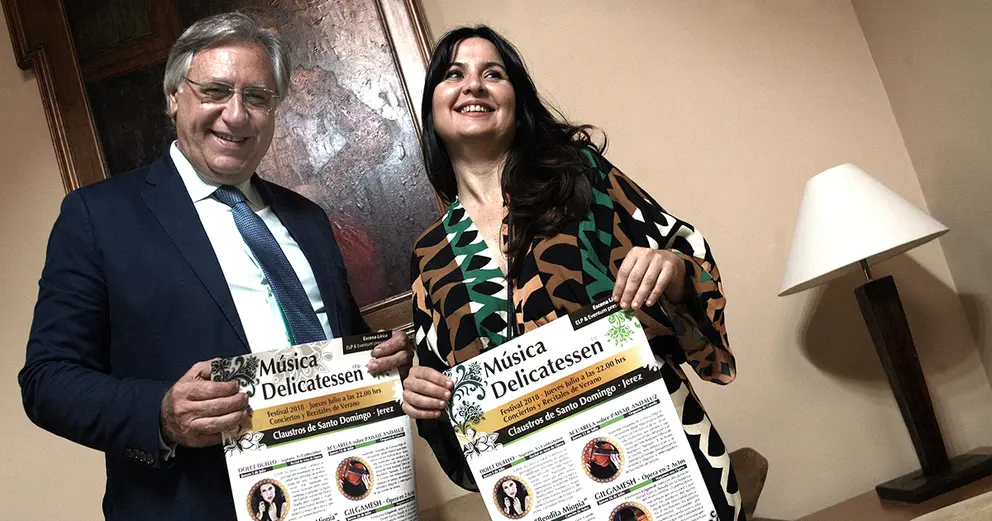 El teniente de alcaldesa de Urbanismo, Dinamización Cultural, Patrimonio y Seguridad, Francisco Camas, ha presentado esta mañana, junto a la representante de Escenas Líricas Producciones, María José Rodríguez, el V Festival Música Delicatessen, que ofrecerá cuatro conciertos todos los jueves del mes de julio en Los Claustros de Santo Domingo.