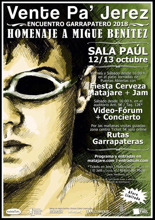 El Vente Pa' Jerez 2018, el encuentro garrapatero homenaje a Migue Benítez, celebrará su quinta edición en la Sala Paúl los próximos 12 y 13 de octubre, coincidiendo con el puente del Pilar.
