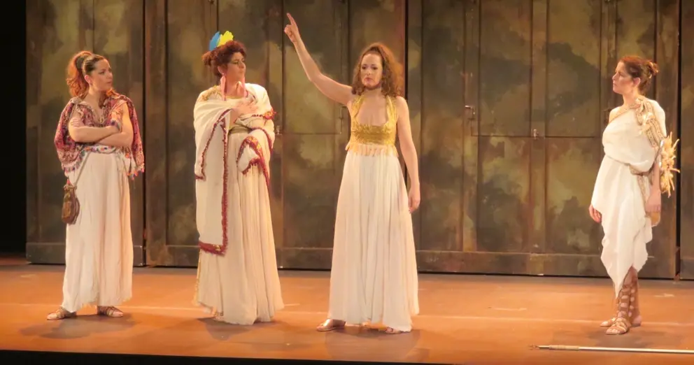 Después de cerrar más de una década de trabajo con Chirigóticas, las actrices y letristas de la compañía, Alejandra López, Teresa Quintero y Ana López Segovia, y la nueva incorporación, Rocío Segovia, se unen en un nuevo proyecto, LAS NIÑAS DE CÁDIZ. Con este nombre, homenaje explícito a las Puellae Gaditanae, artistas celebradísimas del Imperio Romano, quieren volver a trabajar desde las raíces, pero recobrando el pálpito que latía en sus orígenes con La Chirigota de las Niñas. Un pálpito popular sin complejos, desvergonzado, irreverente y provocador. Para encauzar escénicamente nuestro trabajo, parten de la obra LYSÍSTRATA, del comediógrafo griego Aristófanes. Nadie mejor que él para ser su guía, al tratarse del máximo representante de, sin duda, como dirían ellas con familiaridad, la poca vergüenza clásica.