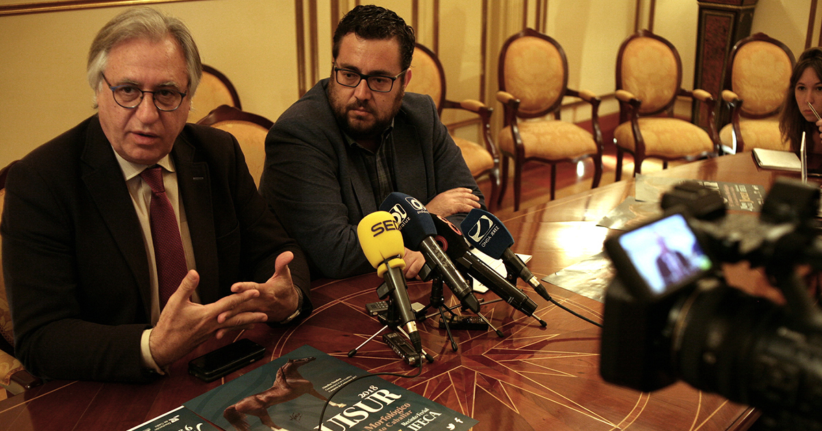 El vicepresidente de IFECA, Jaime Armario, y el 2º Teniente de Alcaldesa del Ayuntamiento de Jerez, Francisco Camas, han presentado esta mañana la 51ª edición del Concurso Morfológico de Ganado Selecto Caballar, EQUISUR 2018.