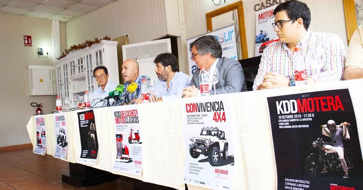 Dentro de las actividades que tendrán lugar con motivo de este gran evento del motor destacan tres especialmente: KDD MOTERA, KDDA DE COCHES Y MOTOS CLÁSICOS y CONVIVENCIA DE 4X4. La presentación de la cartelería de estas tres concentraciones tenía lugar en el restaurante La Casapuerta, del Club Puerta del Sur, con la presencia de Juan García, ADECOSUR; Antonio Rosales, Federación Motoclub Jerez; Carlos García, coordinador de CONVIVENCIA DE 4X4, Evaristo Morales, coordinador KDDA DE COCHES Y MOTOS CLÁSICOS; así como Carlos Landín y Juan Ángel Duarte de la organización de MOTORSUR.