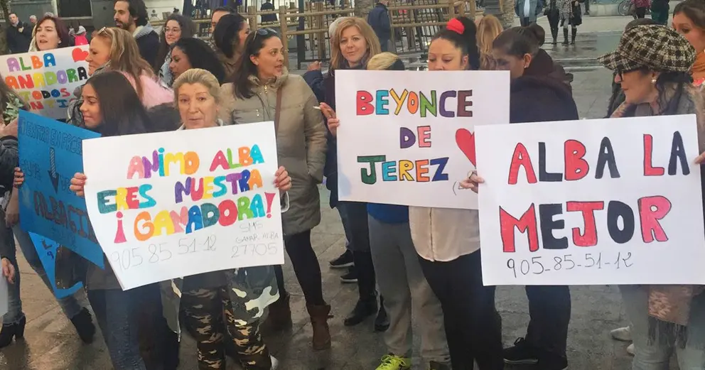 Varias decenas de fans de la joven cantante jerezana Alba Gil se han concentrado a partir de las 17:30 horas en la Plaza del Arenal, para animar a los ciudadanos a apoyar a Alba en la final que disputa este viernes en La Voz, informando de la forma correcta de votar.