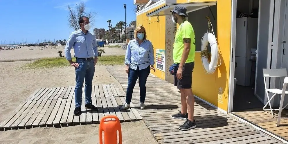 La alcaldesa, Ana Mula, ha visitado este lunes el módulo de coordinación de vigilancia del servicio de salvamento y socorrismo ubicado en la playa de Los Boliches para dar a conocer las características de este dispositivo. "Este equipo trabajará de manera ininterrumpida hasta el 15 de septiembre, diariamente y en horario de 11.00 a 20.00 horas".