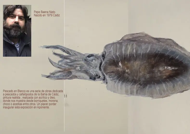 La que lucirá hasta el mes de julio en las paredes del Molino de Mareas es una exposición compuesta por una serie de obras que el gaditano dedica a pescados y cefalópodos de la bahía de Cádiz, realizada en acrílico y óleo. Se trata de la segunda exposición del ciclo de Actividades Artísticas y Culturales para 2017 del Programa de Uso Público del Laboratorio de Investigación Gastronómica Chef del Mar, inaugurado el pasado mes de marzo y que se extenderá hasta el próximo mes de diciembre con otras tres exposiciones más.