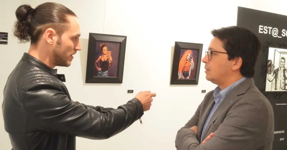 El artista Joaquín Berenguel presenta en la Galería Alfareros su particular reflexión sobre el concepto del 'yo' en las redes sociales, con el título 'Est@_soy_yo', donde el autor muestra una serie de pinturas protagonizadas por instagramers almerienses que invitan al espectador a ubicar la barrera entre la intimidad y lo público en el universo digital.