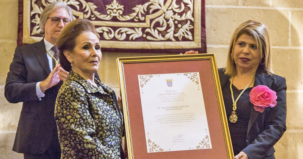 Cuentan los duendes del soniquete antiguo que a Angelita Gómez han concedido el título de Hija Predilecta de Jerez. No cabía un alfiler allá por Santo Domingo. No cabía una toná en el collage de las sonrisas unánimes. Se desgranaba, en un braceo invisible e indivisible, el final de fiesta que introducía el acto institucional. La práctica totalidad de la corporación municipal sobre el estrado.
