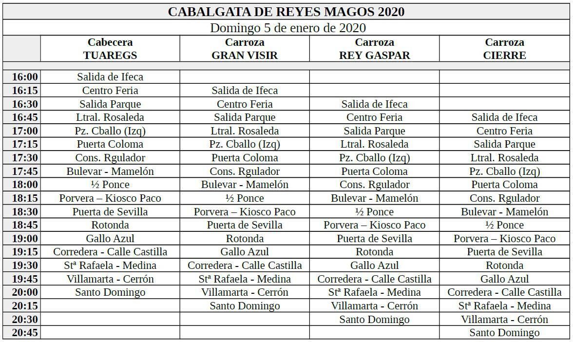 Horario de la Cabalgata de los Reyes Magos en Jerez