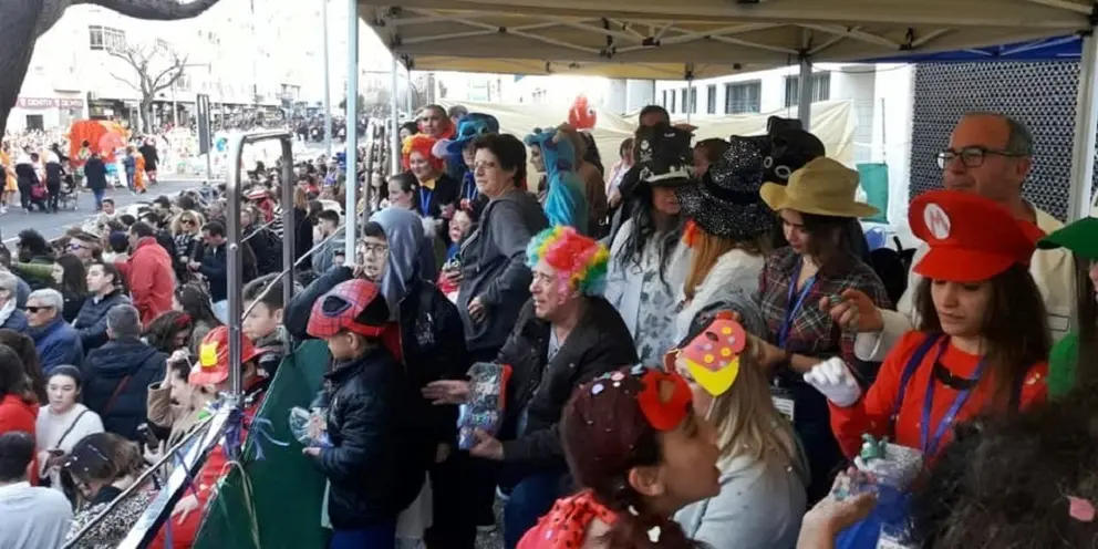 Varios niños del centro tuvieron la oportunidad de salir a la terraza de la fachada del Hospital, donde los responsables del centro colocaron una carpa. Los menores contaron con una bolsa de picnic que contenía un bocadillo, yogur y fruta. Y como no podía ser de otra manera, no faltaron los papelillos y las serpentinas carnavalescas.