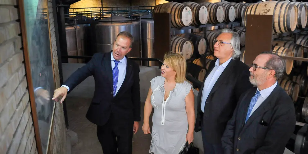 La alcaldesa ha destacado que “antes de que acaben las Fiestas, estamos poniendo en valor lo que es nuestra tradición. Hemos visto la vendimia de noche, nos hemos reunido con un sector importante como son los toneleros, y ahora nos quedaba una parte más fundamental, que es una bodega. Nos habían invitado también a conocer esa parte de innovación tecnológica que además están haciendo siendo muy punteros en esta materia, que también es importante en este proceso de elaboración del vino”.