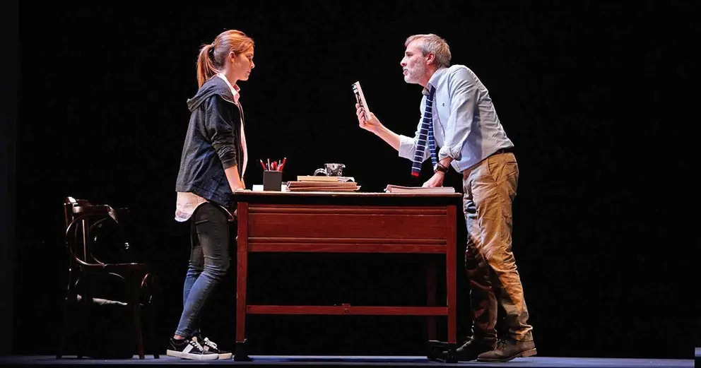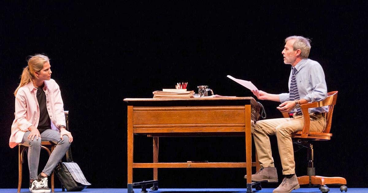 Sobre el escenario, el público podrá apreciar la decidida lucha de clases desde el resentimiento de una estudiante pobre hacia el paternalismo de un profesor muy burgués. Éste recibe en su despacho a la alumna, que desea que le suba la nota del examen. A partir de ahí, se desencadena un trepidante combate dialéctico en el que laten el acoso sexual y el equilibrio de poderes. Un vibrante y extraordinario texto que no deja indiferente al espectador. Y que, de paso, cuestiona el sistema académico vigente.