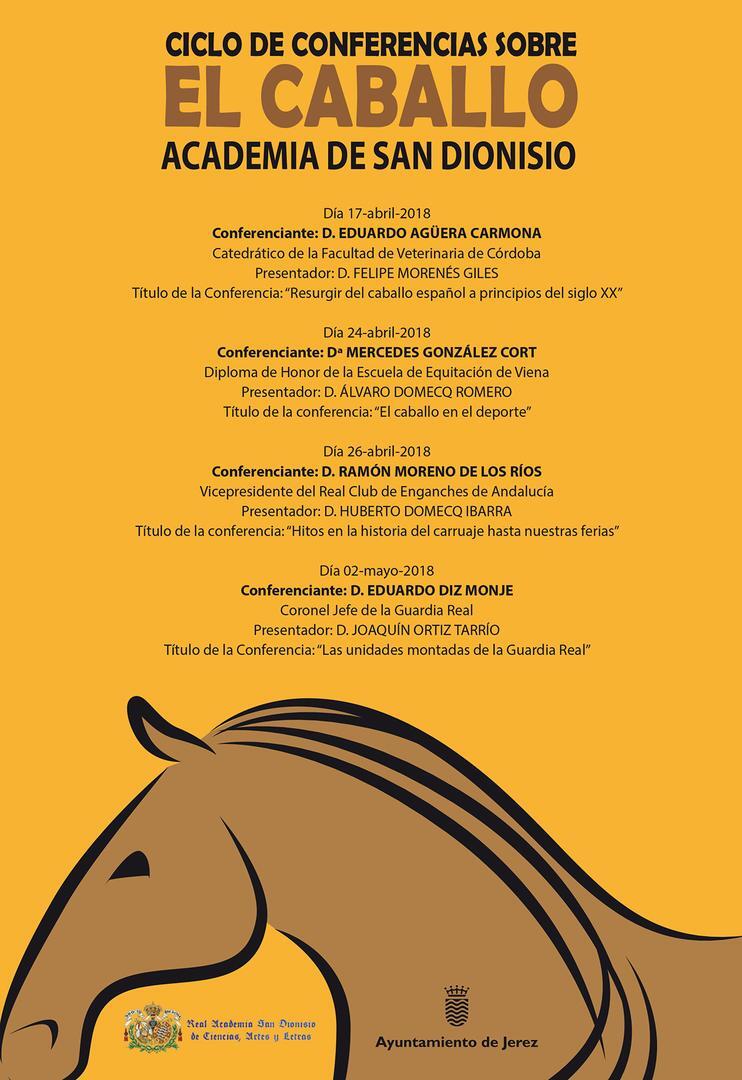 La siguiente conferencia tendrá lugar el martes, 24 de abril, a cargo de Mercedes González Cort, diploma de honor de la Escuela de Equitación de Viena, quien presentada por Álvaro Domecq, tratará la vinculación del caballo al deporte.