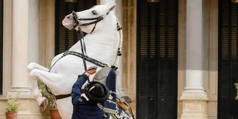 El espectáculo es un ballet ecuestre con música andaluza y española, y vestuario de gala a la usanza del siglo XVIII, sobre una coreografía extraída de las reprises de doma y otros trabajos de la equitación tradicional. Para esta actuación que se celebra a las 17.00 horas, se escenificará los números: ‘Ritmo Andaluz’, ‘Collera Jerezana’, ‘Flamenco Clásico a Dos’, ‘Trabajos en la Mano’, ‘Fantasía Olímpica’, ‘Riendas Largas’ y ‘Son y Ritmo’.