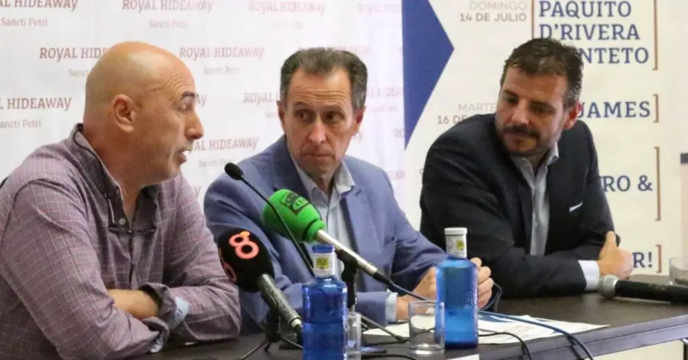 El alcalde de Chiclana, José María Román; el director del hotel Royal Hideaway Sancti Petri, Ignacio Martín, y el director de la promotora Jazz Vejer, Ignacio de Corral, han presentado el nuevo ciclos de conciertos ‘Royal Hideaway Sessions’, que se celebrará este verano en el anfiteatro de este establecimiento hotelero. Se trata de un ciclo pensado para poder disfrutar de los detalles y los matices de la música de una forma relajada y cercana. Un aforo reducido con artistas de altísima calidad que hacen que la experiencia sea realmente increíble.